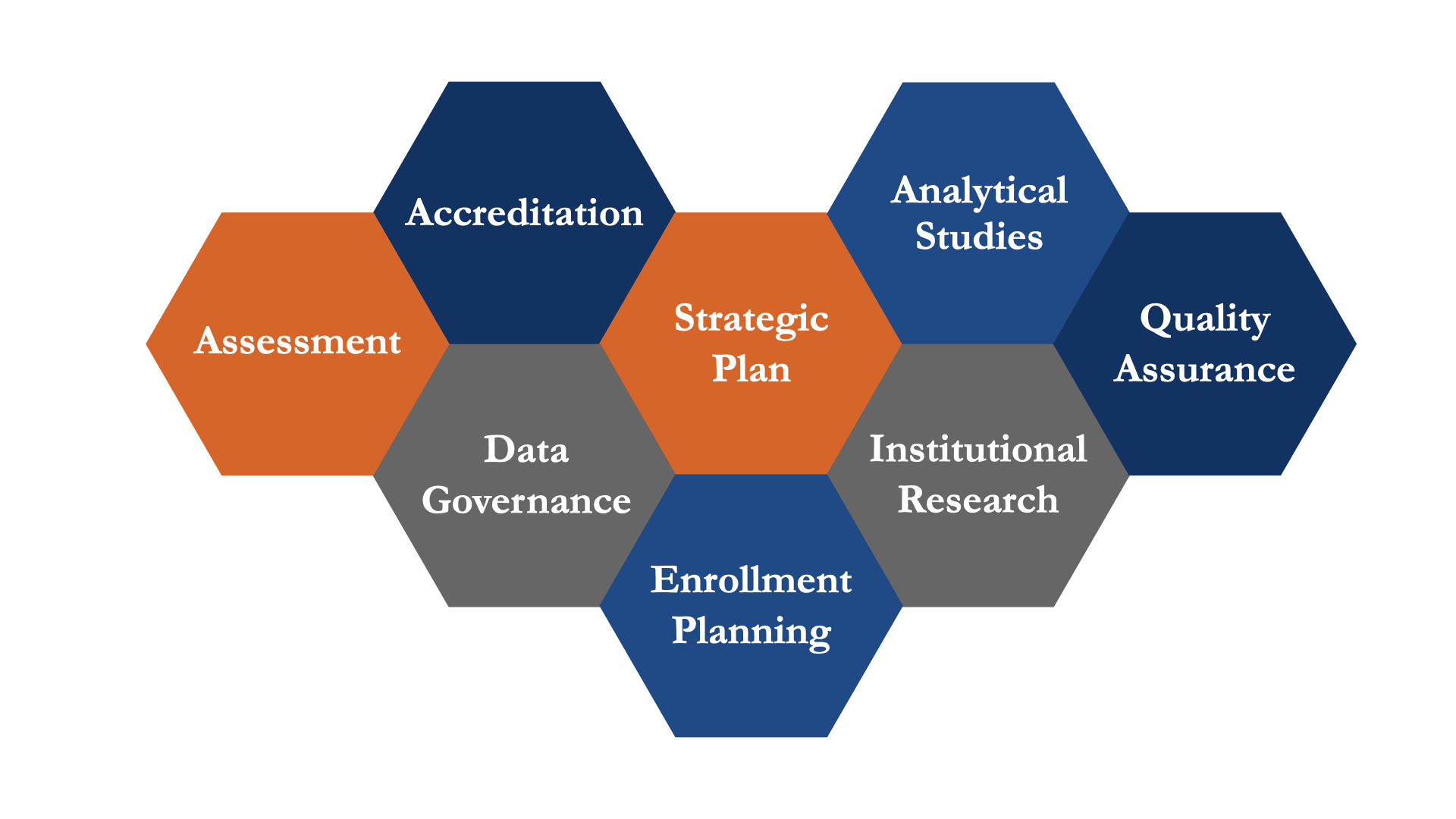 The Office of Institutional Effectiveness and Planning leads systematic and integrated efforts to examine the effectiveness of university programs, curricula, services and operations; provides meaningful data to support strategic planning and decision-making at all levels of the university; plays a critical role in demonstrating accountability to accreditation, external entities and the general public; fosters a campus-wide culture of data-informed decision-making, continuous improvement, and teaching and learning innovations.